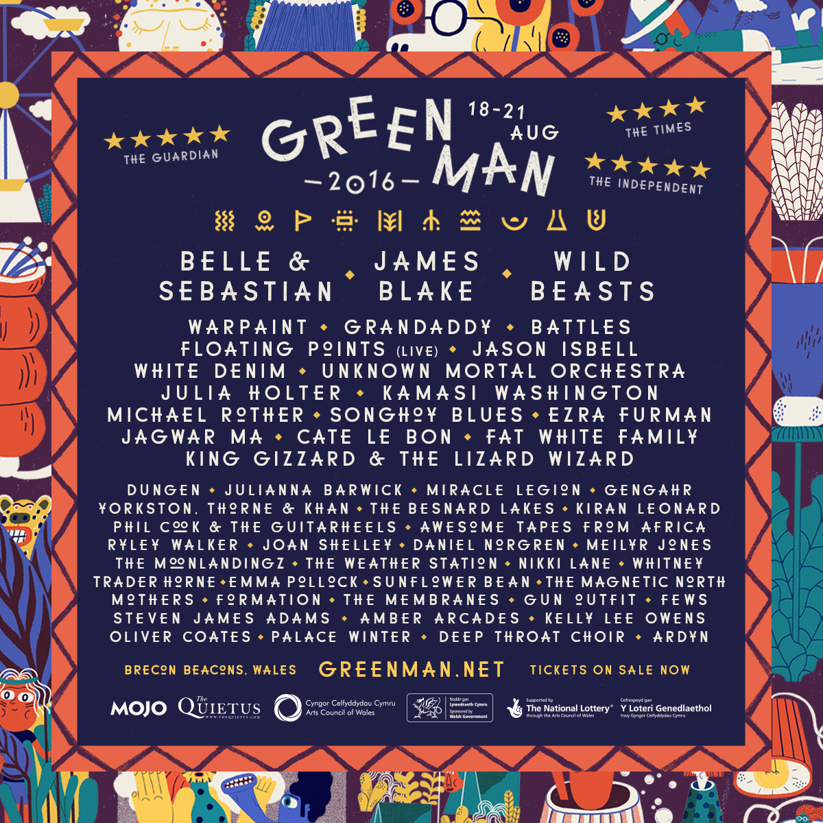 El Green Man 2016 suma a su cartel a: Warpaint, Grandaddy, Kamasi Washington, Dungen, King Gizzard & The Lizard Wizard, Dungen, Yorkston, Thorne & Khan, Julianna Barwick, Gengahr, The Moonlandingz, Ryley Walker, Kiran Leonard, Awesome Tapes From Africa, The Weather Station, Emma Pollock, Whitney, Gun Outfit, The Magnetic North, The Membranes, FEWS, Amber Arcades, Steven James Adams y Oliver Coates.